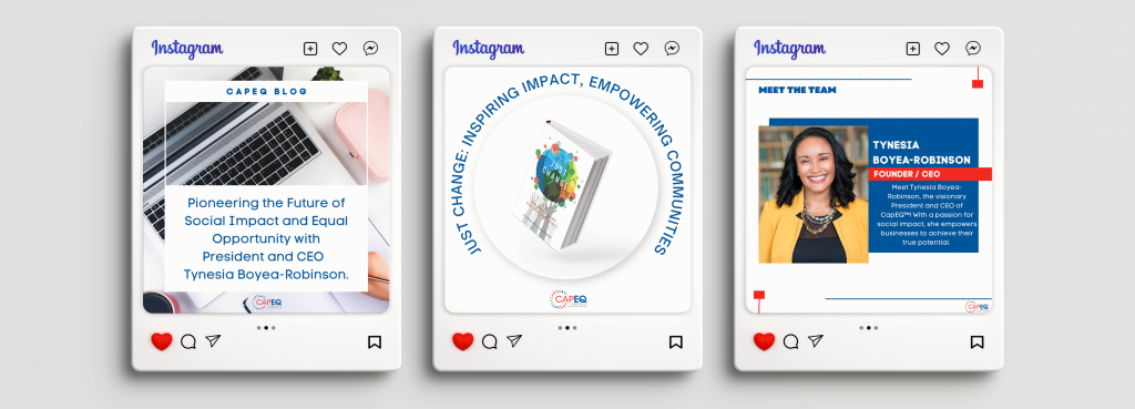 As the content creator for CapEQ, my focus was on developing online posts that effectively promoted workplace equality. I used a mix of content types, including statistics, graphics, blog highlights, and team introductions to highlight the significance and impact of fostering equality in professional settings.